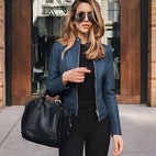 Ashlee - Κομψή, λεπτή δερμάτινη ζακέτα για γυναίκες
