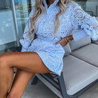 Σετ γυναικείο από δαντέλα – μπλούζα με μακριά μανίκια και σορτς με ψηλή μέση. Ένα κομψό και ελαφρύ σύνολο που συνδυάζει φινέτσα και άνεση, ιδανικό για ζεστές ημέρες και ειδικές περιστάσεις.