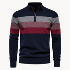 Το πουλόβερ με τέταρτο φερμουάρ Aurullo είναι σχεδιασμένο με ένα κομψό ριγέ μοτίβο και κατασκευασμένο από ένα πολυτελές μείγμα βαμβακιού. Αυτό το εξαιρετικά απαλό πουλόβερ αγκαλιάζει απαλά το δέρμα και προσφέρει ασύγκριτη ζεστασιά. Το εκλεπτυσμένο φερμουάρ και η εφαρμοστή γραμμή το καθιστούν ένα ευέλικτο απαραίτητο κομμάτι, ιδανικό για κάθε περίσταση.