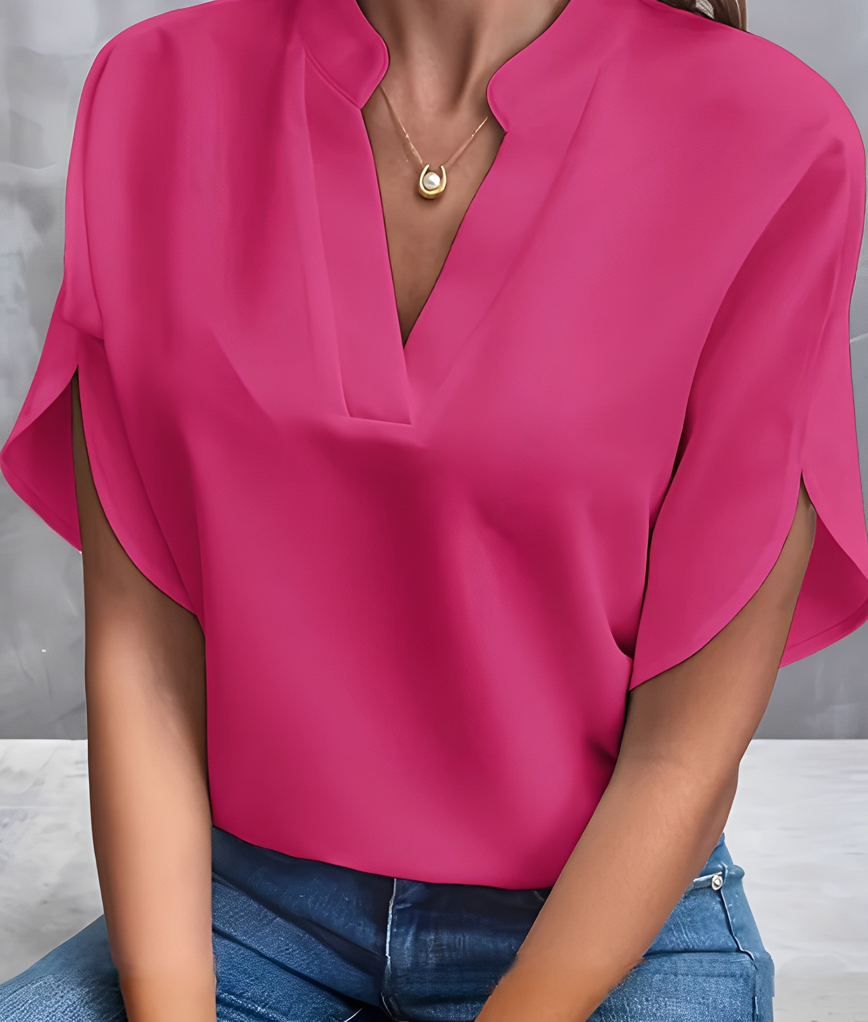 Η μπλούζα Chantelle διακρίνεται για την κλασική V-λαιμόκοψη και το απλό σχέδιο που συνδυάζεται εύκολα. Το ελαφρύ υλικό προσφέρει μεγάλο επίπεδο άνεσης, ενώ η χαλαρή γραμμή επιτρέπει ελευθερία κινήσεων. Ιδανική για το γραφείο, τον ελεύθερο χρόνο ή ειδικές περιστάσεις – αυτή η μπλούζα είναι ένα προσαρμοστικό βασικό κομμάτι σε κάθε ντουλάπα.