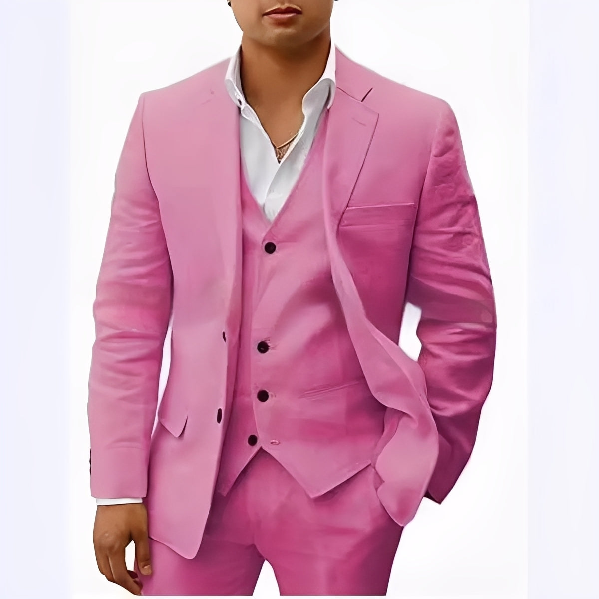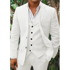Κάντε εντύπωση με αυτό το κομψό και στυλάτο 3-κομμάτι λινό κοστούμι που ξεχωρίζει.