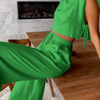 Ανακαλύψτε το σύνολο Florencia Sommer, σχεδιασμένο για να συνδυάζει άνεση και στυλ. Αποτελείται από ένα γυναικείο crop-top με κορδόνια και ένα μακρύ, ρέον παντελόνι με ελαστική μέση, ιδανικό για τις καλοκαιρινές σας εξόδους, τις διακοπές ή τις βραδιές με φίλους.