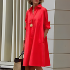 Ανακαλύψτε την απόλυτη άνεση και κομψότητα με το φόρεμα-πουκάμισο μας για γυναίκες. Παραγγείλτε τώρα και προσθέστε μια σοφιστικέ πινελιά στην γκαρνταρόμπα σας!