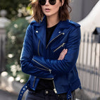 Miranda - Κλασική γυναικεία ζακέτα από δέρμα με φερμουάρ