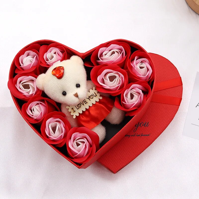 Μορφή Καρδιάς – Δώρο Κουτί με Αρκούδα για την Ημέρα του Αγίου Βαλεντίνου