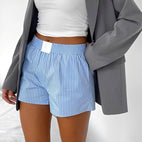 Γυναικεία Lounge Σορτς – Ελαστική Μέση – Αναπνεύσιμο – Ριγέ – Άνετη Εφαρμογή: Χαλαρώστε με στυλ με αυτά τα άνετα lounge σορτς! Το αναπνεύσιμο ύφασμα και η ελαστική μέση εξασφαλίζουν τέλεια εφαρμογή και εξαιρετική άνεση. Ιδανικό για μια χαλαρή μέρα στο σπίτι ή μια casual έξοδο.