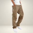 Noah – Ανδρικές Cargo Παντελόνες με Τσέπες συνδυάζουν άνεση, ευελιξία και μοντέρνα εμφάνιση. Χάρη στην ανθεκτική τους κατασκευή, είναι τέλειες για φθινόπωρο και χειμώνα και σας συνοδεύουν αξιόπιστα στην καθημερινότητα και στον ελεύθερο χρόνο. Οι πρακτικές τσέπες cargo προσφέρουν αρκετό χώρο για όλα τα σημαντικά αντικείμενα, ενώ η άνετη γραμμή εξασφαλίζει απεριόριστη ελευθερία κινήσεων. Είτε για περπάτημα, στο γραφείο ή σε ταξίδια – αυτά τα παντελόνια είναι κατάλληλα για κάθε περίσταση και προσθέτουν μια χαλαρή νότα στην εμφάνισή σας.