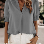 - Αναπνεύσιμη και ελαφριά: αέρινο ύφασμα σιφόν και κοντά μανίκια ιδανικά για ζεστές ημέρες.