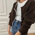 Η Vivien – Στριφτό μπουφάν με διακόσμηση από πέρλες και φράντζα προσθέτει μια πολυτελή νότα σε κάθε εμφάνιση. Λεπτομέρειες από πέρλες διακοσμούν το ύφασμα και προσφέρουν μια απαλή λάμψη, ενώ η μοντέρνα φράντζα προσθέτει μια σύγχρονη πινελιά. Το ευχάριστο υλικό πλέξης προσφέρει άνεση και κρατάει ζεστά. Ιδανικά συνδυάζεται με τζιν, φορέματα ή φούστες – για μια εμφάνιση που συνδυάζει τέλεια την κομψότητα και την άνεση. Αυτό το μπουφάν είναι το τέλειο κομμάτι δήλωσης για τις γυναίκες που προσέχουν τη μόδα.