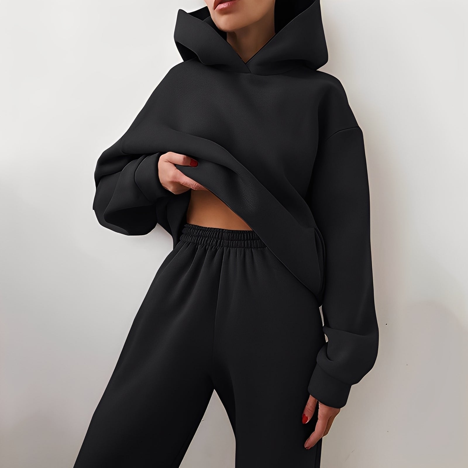 Το σετ «Wenona» προσφέρει άνεση και στυλ με σύγχρονο σχέδιο. Φτιαγμένο από μαλακό, ελαστικό ύφασμα παρέχει ευχάριστη αίσθηση – κατάλληλο για έξοδο ή για χαλαρές στιγμές στο σπίτι. Το φούτερ με κουκούλα και το ταιριαστό παντελόνι προσφέρουν μια κομψή εμφάνιση, που είναι ταυτόχρονα χαλαρή και επιμελημένη. Είτε σε ταξίδια, είτε σε βόλτα, είτε σε χαλάρωση – αυτό το σετ είναι πάντα κατάλληλο.